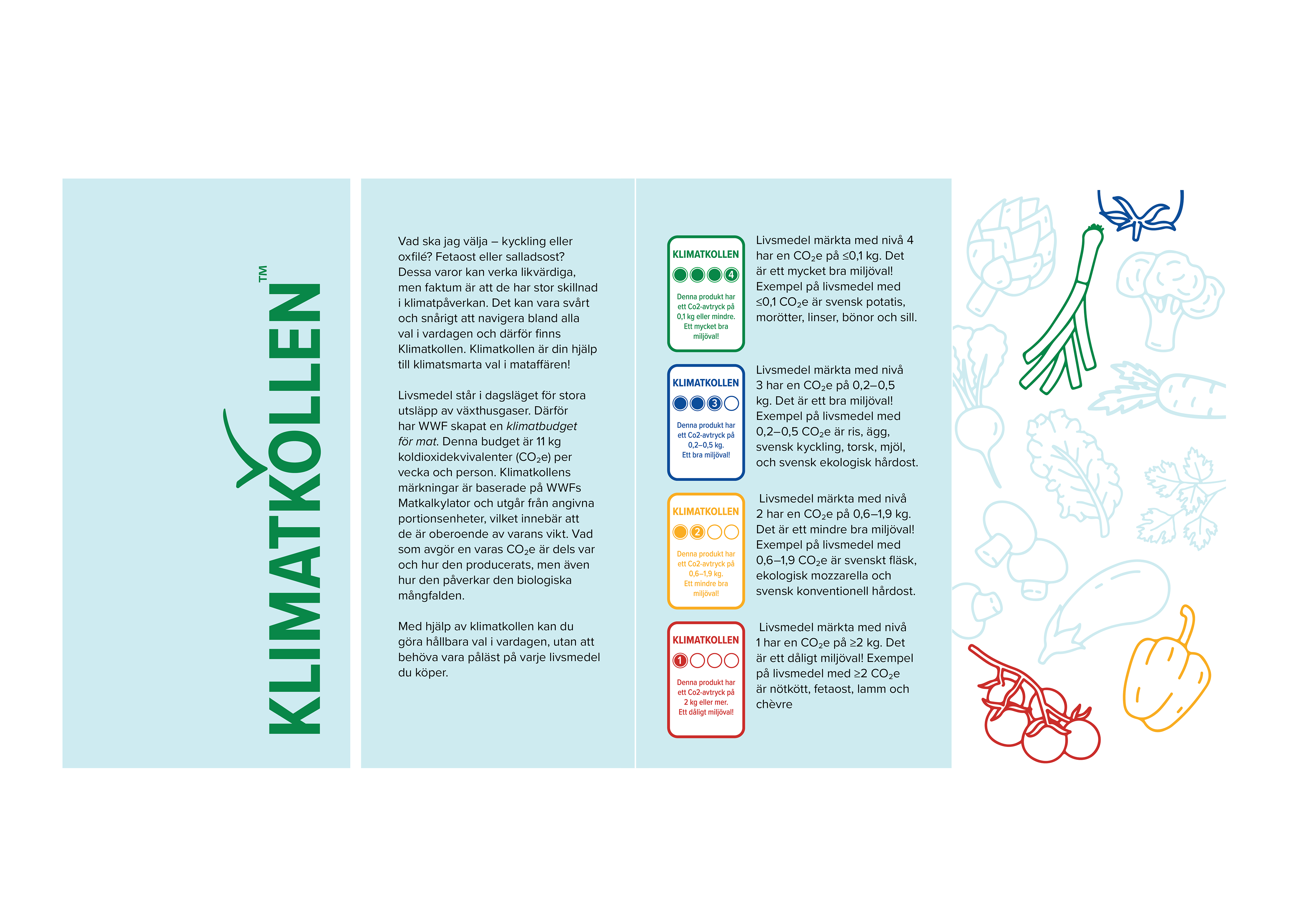 Klimatkollen är en skala som mäter livsmedels Co2e (klimatavtryck). Den är skapad för att hjälpa konsumenter göra informerade och klimatsmarta val i mataffären!
